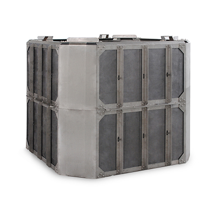 隔熱基體是PAN硬質(zhì)氈(或泡沫炭、根據(jù)爐型選擇),基體內(nèi)表面(熱面)是C/C-2D板強化層,外表面(冷面)是石墨紙貼面,端面,孔,槽涂刷炭化硅涂層,隔熱基體處于全封閉狀態(tài)。